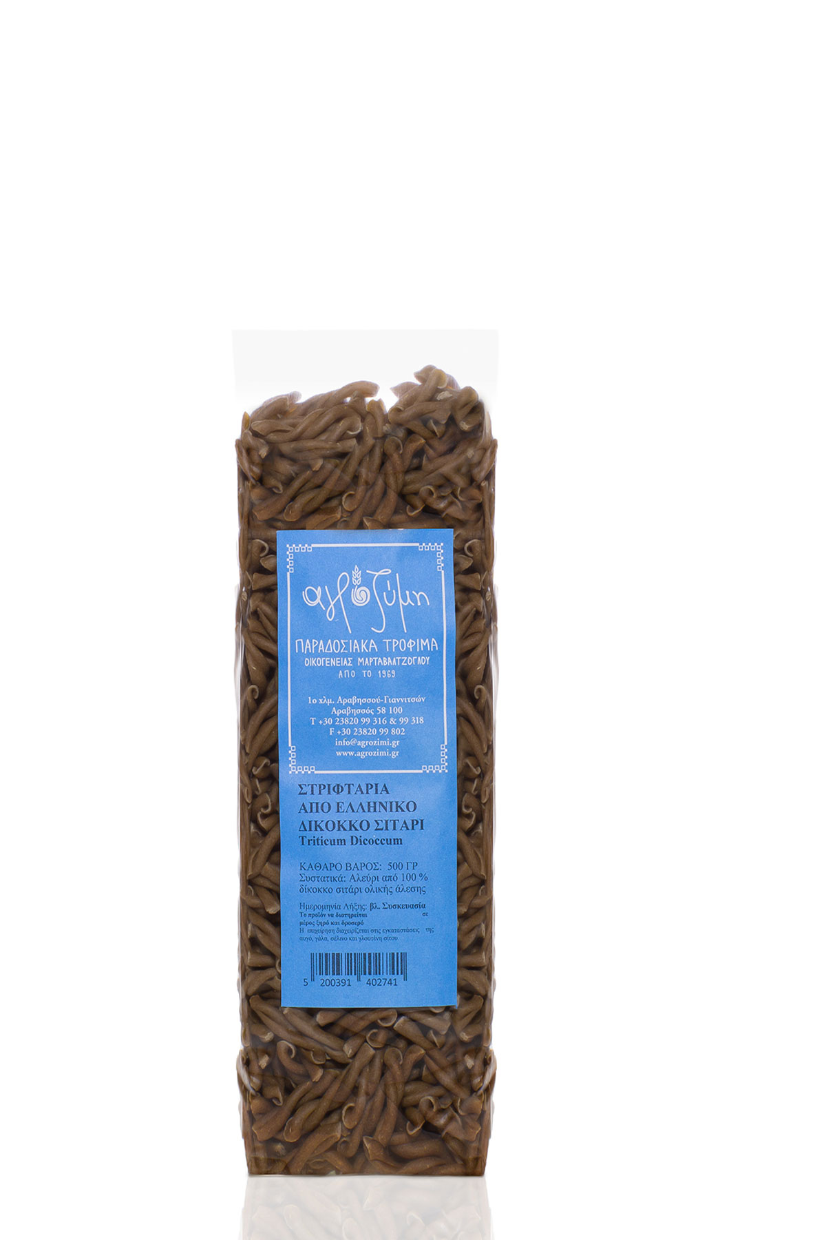 Αλεύρι ζέας ολικής άλεσης και σχήμα που συνεχίζει μία παράδοση αιώνων σε όλη τη Μεσόγειο. Τα στριφτάρια ήταν χειροποίητα ζυμαρικά, που κάθε περιοχή τους χάριζε ένα διαφορετικό όνομα στην Κρήτη τα λένε “σιουφιχτά” στη Χίο “χερίσια”, στην Κύπρο “σμιλωτά” και στην Ιταλία “casarecci”. Λεπτά φύλλα ζύμης «στρίβονταν», εξού και το όνομα «στριφτάρια», με το χέρι ή με τη βοήθεια ενός λεπτού, μακρόστενου ξύλου. Στην Αγροζύμη, αναβιώνουμε την παράδοση και φτιάχνουμε στριφτάρια και από αλεύρι ζέας ολικής άλεσης, χωρίς προσθήκη αλατιού. Στριφτάρια που γύρω τους τυλίγεται η σάλτσα και είναι ιδανικά για σαλάτες ζυμαρικών, γιατί λόγω σχήματος παραμένουν λαχταριστά, ώρες μετά το σερβίρισμα.