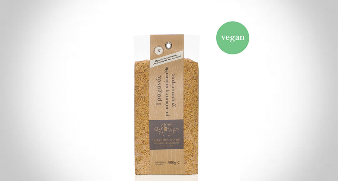 A flagship product of Greek cuisine, traditional trahana, in 11 different variations. Agrozimi trahana is produced from fine wheat or flour, kneaded with fresh cow’s milk or fresh yogurt, enriched with vegetables and herbs and dried in natural conditions to turn a traditional flavour into a modern culinary delight and an inspiration for a wide range of gastronomic options. Enjoy as a plain hot soup